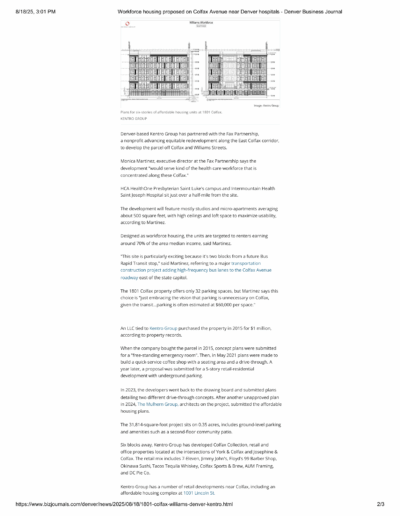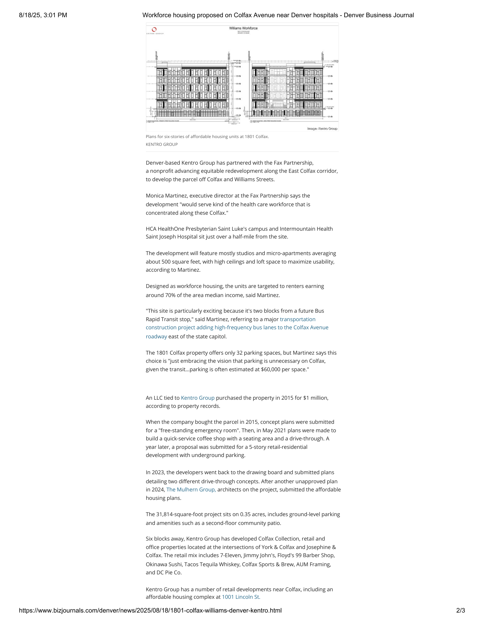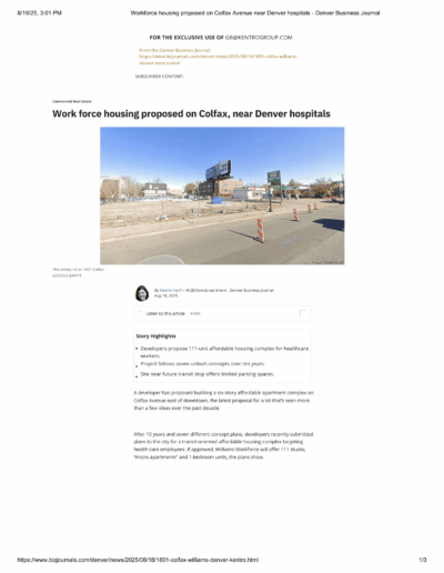 Denver Business Journal Highlights The Fax and Kentro Group's Potential Workforce Housing Project